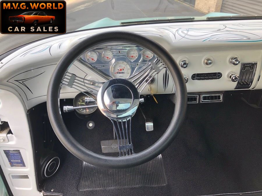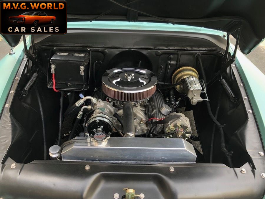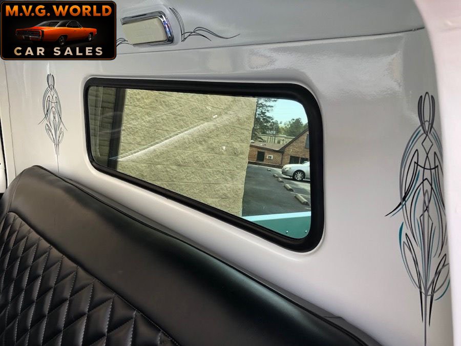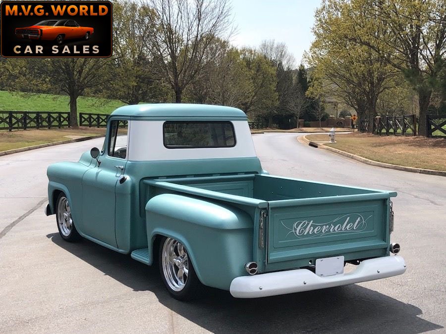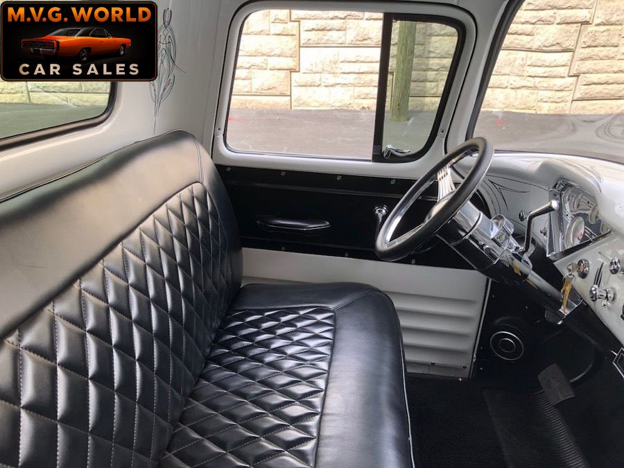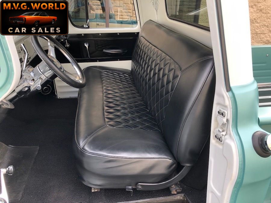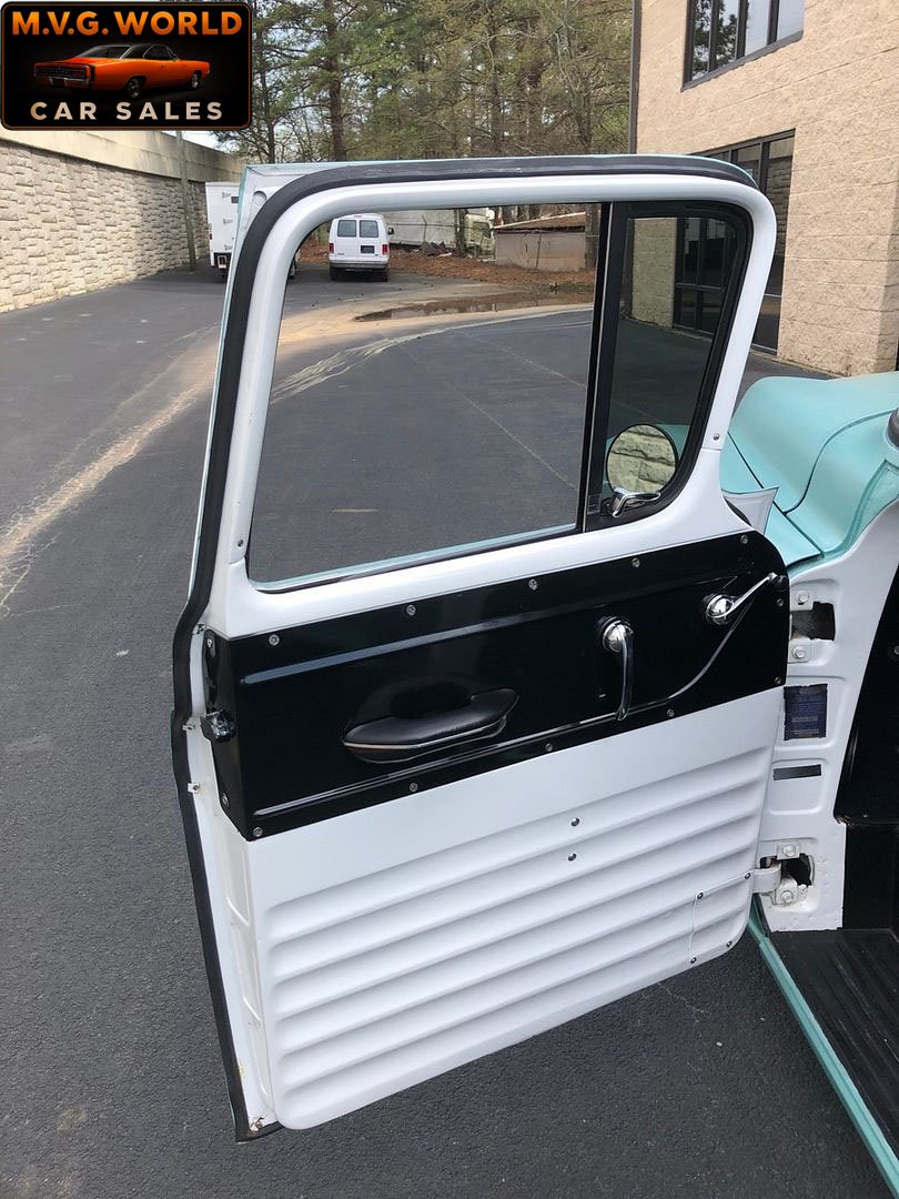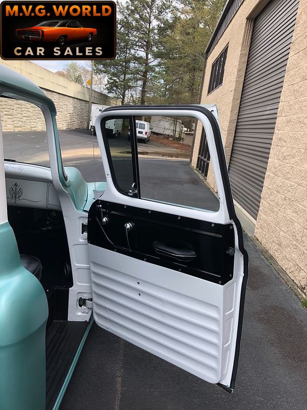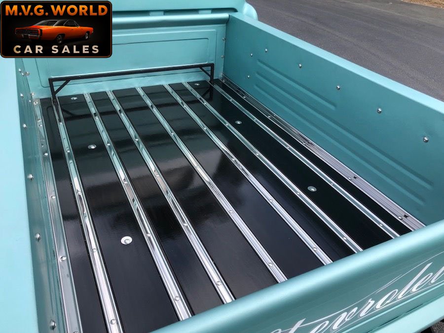 Finished in striking Seafoam Green with eggshell white cab accents and custom pinstriping, the body presents excellent steel panels and a clean stance. A beautifully finished ebony-stained wood bed adds to the vintage hot rod appeal. The truck rides on brand-new 18” American Racing Torque Thrust wheels with fresh tires, supported by a Camaro front clip, drop spindles, tubular A-arms, and a rebuilt 10-bolt rear end.