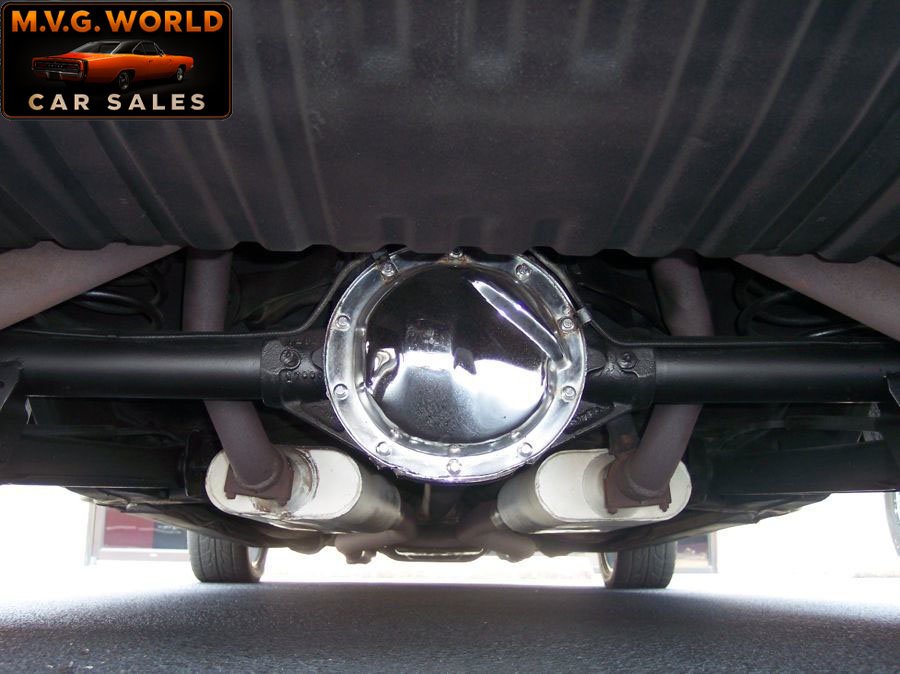 The California-built, rust-free body wears show-quality black paint with white cowl stripes cleared over, excellent chrome, and straight panels. A functional cowl induction hood, polished 17” wheels with staggered radials, and a custom fitted tonneau cover complete the exterior. The bed is lined and clean, with no signs of rust.